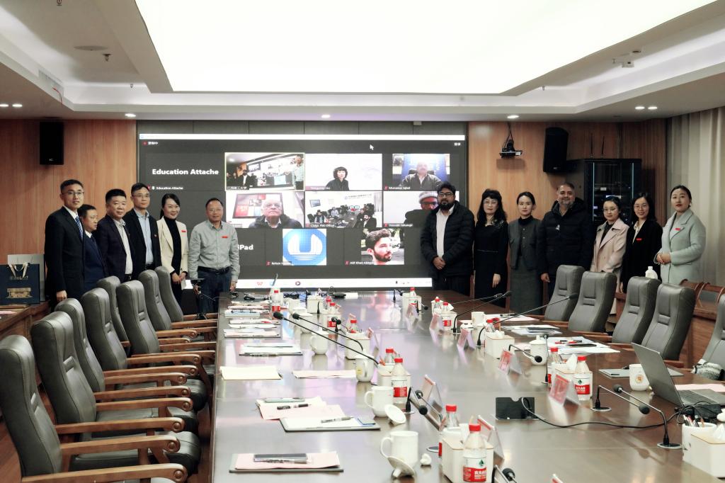 本网讯 1月6日,中国三峡集团来校召开巴基斯坦奖学金计划验收专题会。我校党委常委、副校长黄志繁,三峡国际副总经理张凯洪、董事及董事会ESG委员会召集人刘扬扬,三峡集团社会责任办公室副主任经济师陈明,巴基斯坦驻华大使馆文化专员阿菲法·沙吉亚,巴基斯坦私人电力与基础设施委员会(PPIB)董事穆纳瓦博士,巴基斯坦旁遮普大学Danish Arif教授等人以及我校国际交流合作处等相关职能部门和学院负责人参会。