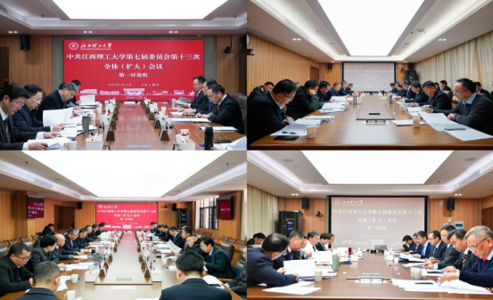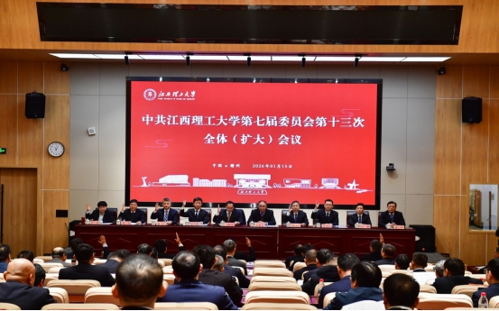 本网讯 1月15日,中共江西理工大学第七届委员会第十三次全体(扩大)会议在三江校区召开。会议听取2025年以来学校党委常委会的工作报告,部署学校2026年度和今后一个时期重点工作,深入研究学校“十五五”事业发展规划编制工作。全体校领导和全体党委委员出席会议。校学术委员会主席、副主席,校务委员会主任、副主任委员,校纪委委员,各民主党派负责同志及各二级单位党政主要负责人参加会议。