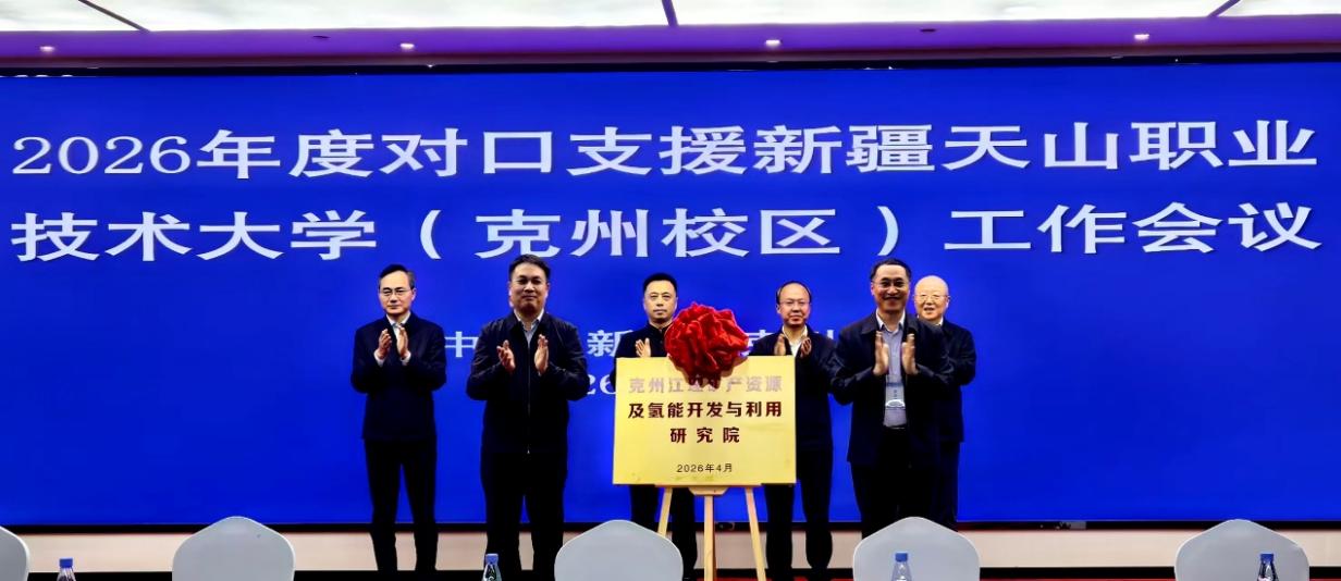 本网讯  4月17日,校党委书记刘祖文赴新疆克孜勒苏柯尔克孜自治州出席2026年度对口支援新疆天山职业技术大学(克州校区)工作会议。会上,刘祖文与江西援疆前指党委书记赖晓军共同为江西理工大学与该校共建的“克州江理矿产资源及氢能开发与利用研究院”揭牌,学校援疆教师代表黄丽娜在会上作典型发言。