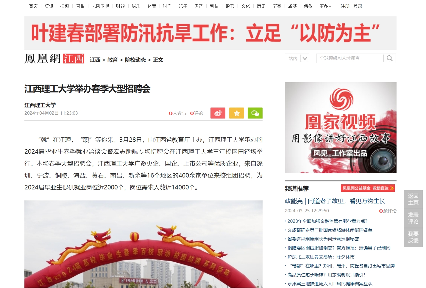 江西理工大学抢抓春招关键期,提前规划部署,多措并举。江西理工大学冶金工程学院毕业班辅导员刘畅表示,在学生就业工作上,提前了解学生的就业意向并分类指导,常态化与企业对接并建立良好的关系,做好信息收集工作、宣传工作、后勤保障工作等基本工作也尤为重要,“学校每年办大型招聘会都拿出大量人力物力,只为给企业和毕业生搭建一个双向选择的平台。”