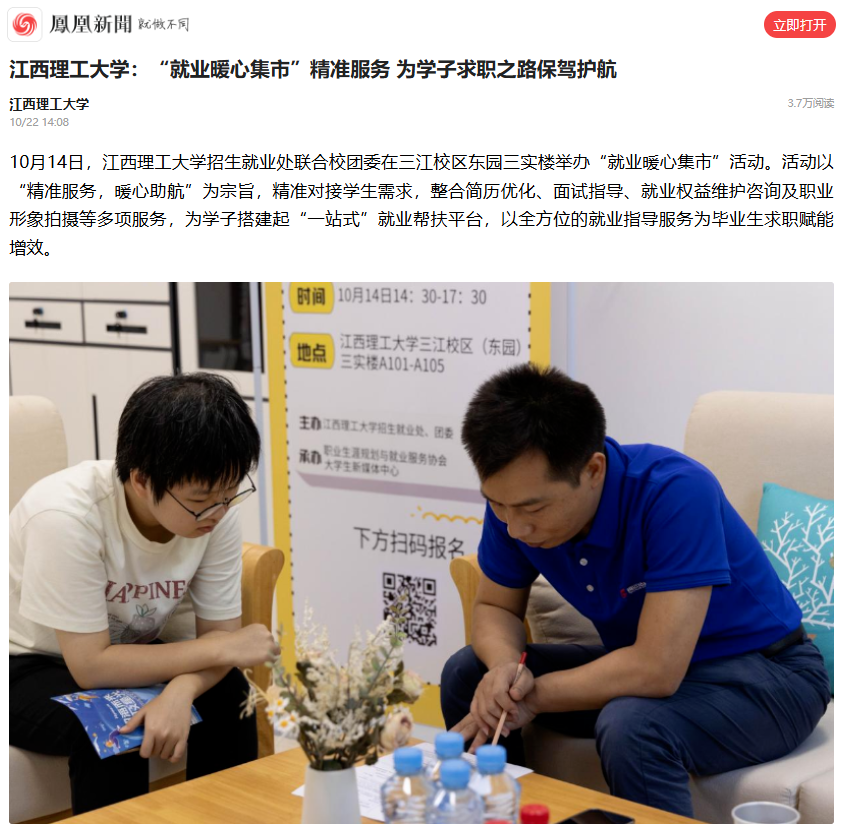 《凤凰新闻》:江西理工大学:“就业暖心集市”精准服务 为学子求职之路保驾护航