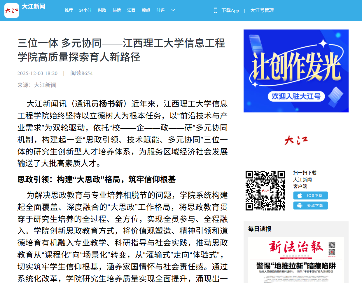 《大江新闻》:三位一体 多元协同——江西理工大学信息工程学院高质量探索育人新路径