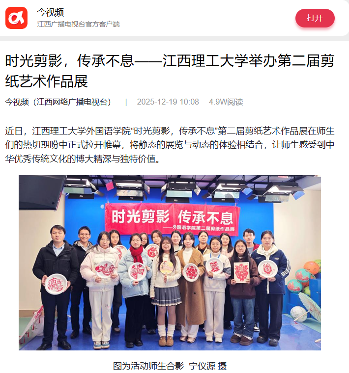《江西网络广播电视台》:时光剪影,传承不息——江西理工大学举办第二届剪纸艺术作品展