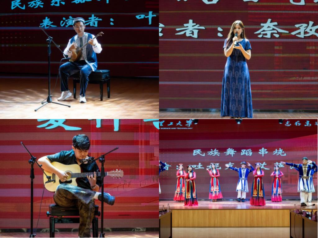 会上,还表演了丰富多彩的文艺节目。民族乐器冬不拉演奏经典曲目,悠扬旋律里融入独特民族韵味;独唱、合唱或清甜动听,或温柔治愈;民族舞蹈串烧以灵动舞姿展现少数预科学子风采,将现场气氛推向高潮;说唱节目则尽显青春张力。最后,吉他弹唱《我爱你中国》响起,全场师生不自觉跟唱,爱国情怀与民族情谊在旋律中深深交融。