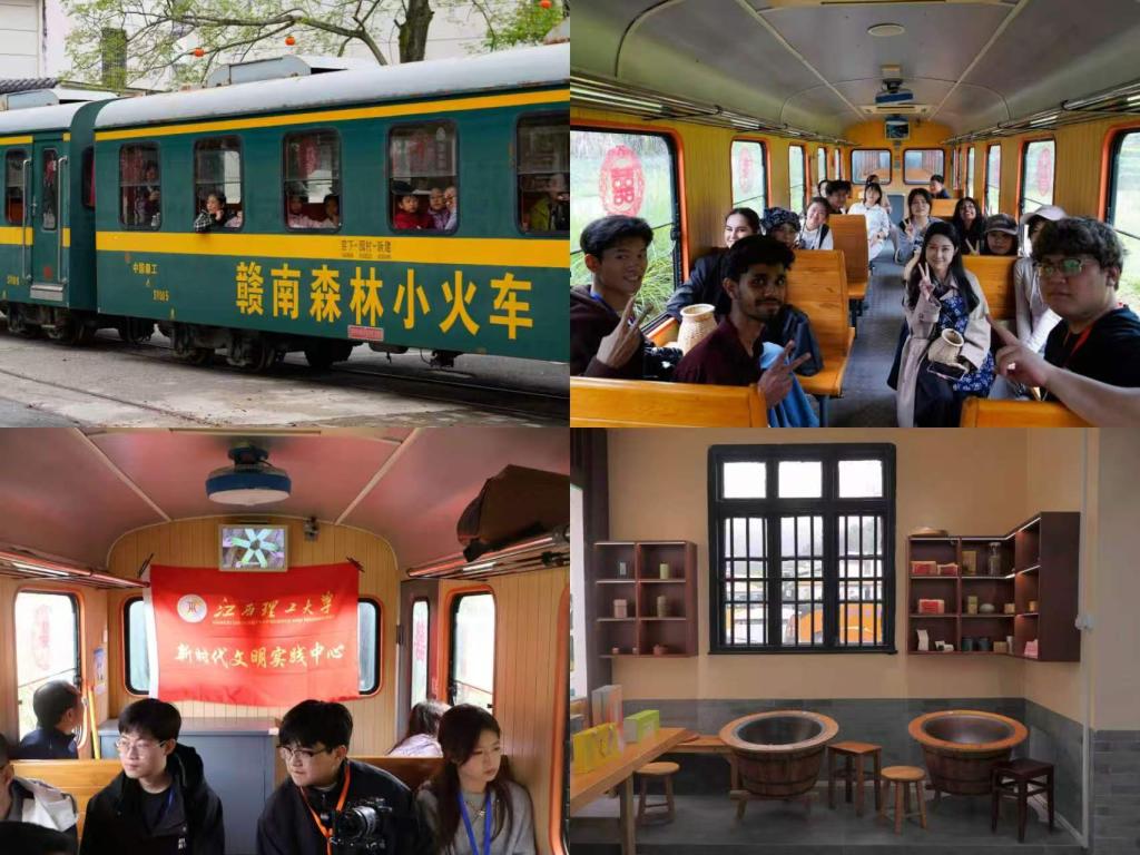 走进梅水乡园村村,师生一同乘坐被誉为 “世界级旅游珍品” 的赣南森林小火车,在穿行青山绿水间追溯其历史变迁,真切感受这条铁路从昔日木材运输专线到如今文旅发展大动脉的华丽蝶变。在和美乡村示范点,大家走进 “5678 时代记忆馆”,细致了解上犹茶文化、客家门匾文化、姓氏文化与非遗文化的传承发展,沉浸式体味乡村深厚的文化底蕴。